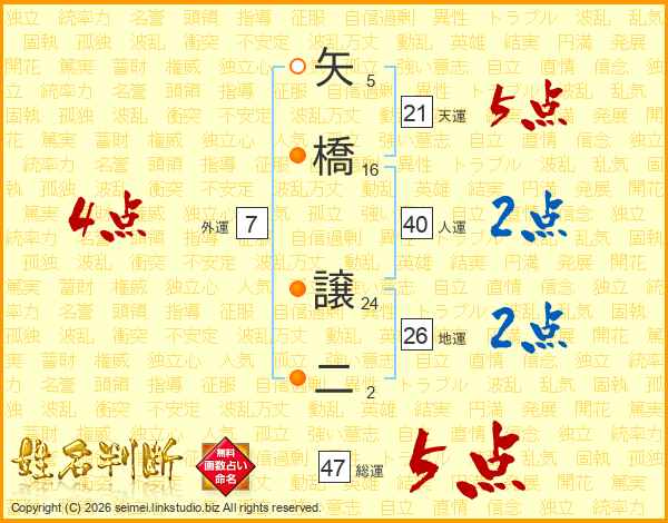 矢(5画)橋(16画) 譲(24画)二(2画)