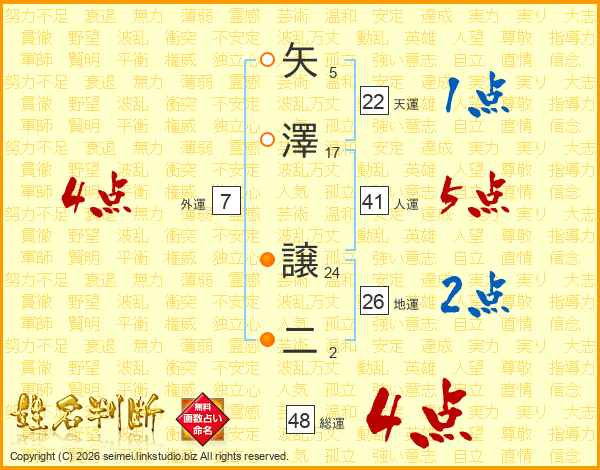 矢澤譲二さんの総運は48画の4点!