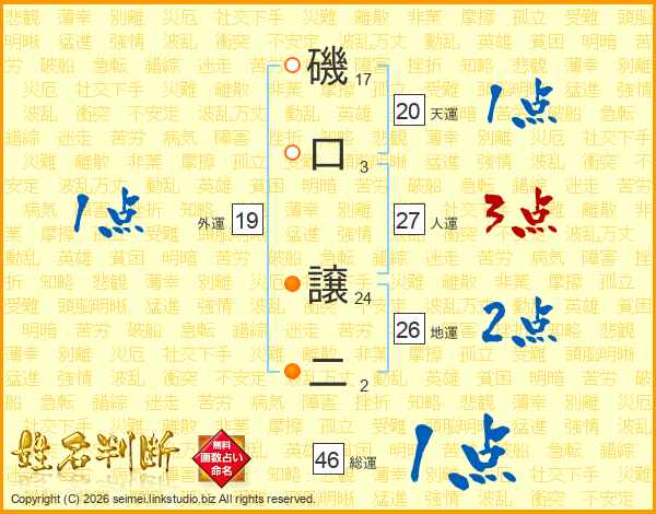 磯口譲二さんの地運は26画の2点!