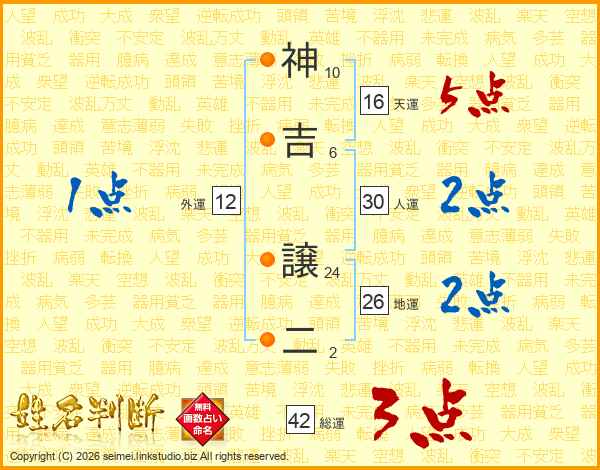 神吉譲二さんの総運は42画の3点!