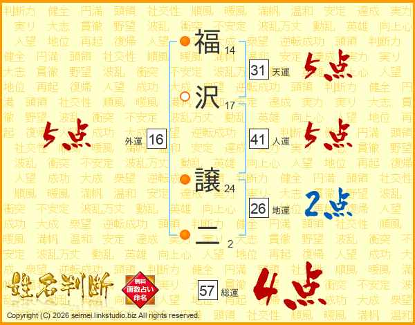福沢譲二さんの総運は57画の4点!