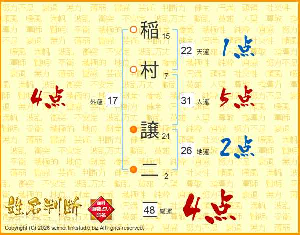 稲村譲二さんの総運は48画の4点!