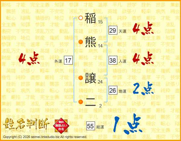 稲熊譲二さんの地運は26画の2点!