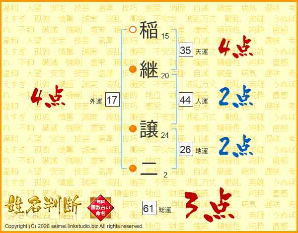 稲継譲二さんの総運は61画の3点!