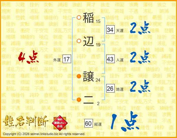 稲辺譲二さんの天運は34画の2点!