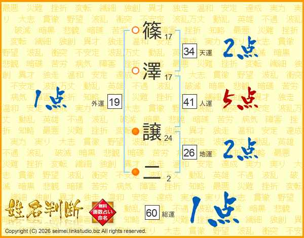 篠(17画)澤(17画) 譲(24画)二(2画)