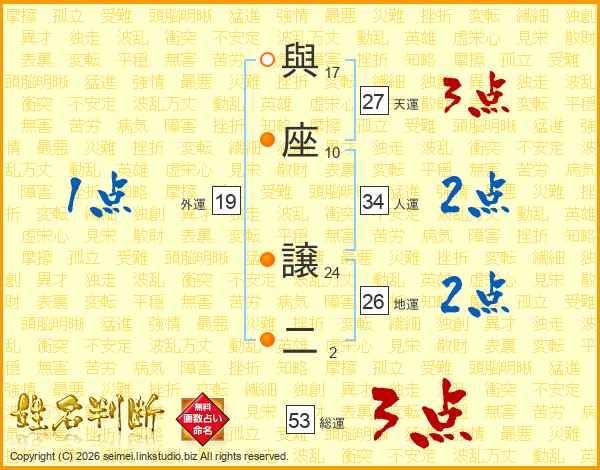 與座譲二さんの総運は53画の3点!