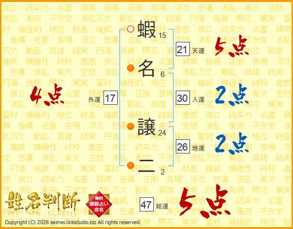 蝦名譲二さんの天運は21画の5点!