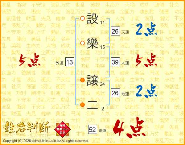 設樂譲二さんの総運は52画の4点!