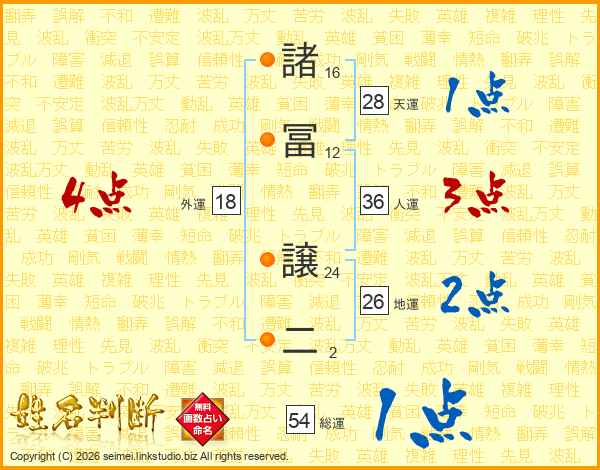諸冨譲二さんの総運は54画の1点!