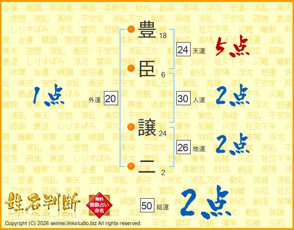 豊臣譲二さんの総運は50画の2点!