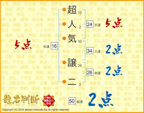 超人気譲二さんの天運は24画の5点!