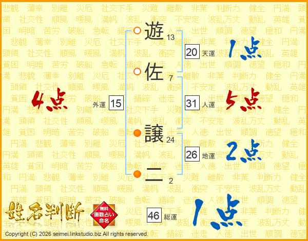 遊佐譲二さんの総運は46画の1点!