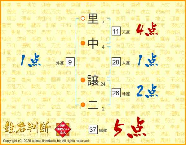 里中譲二さんの地運は26画の2点!
