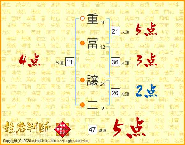重冨譲二さんの総運は47画の5点!