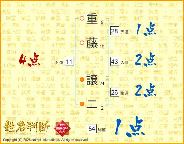 重藤譲二さんの地運は26画の2点!