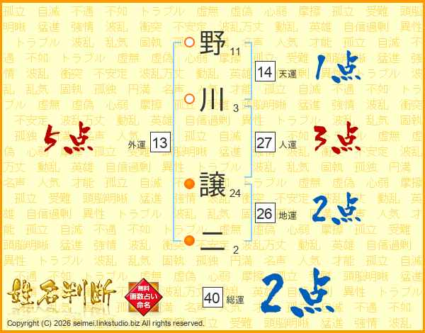 野川譲二さんの総運は40画の2点!