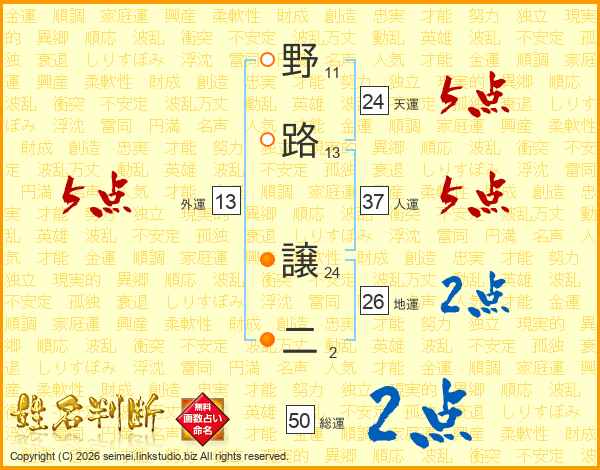 野路譲二さんの外運は13画の5点!