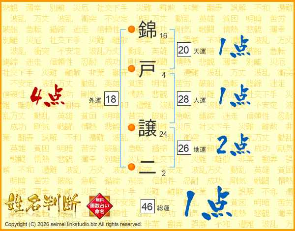 錦戸譲二さんの総運は46画の1点!