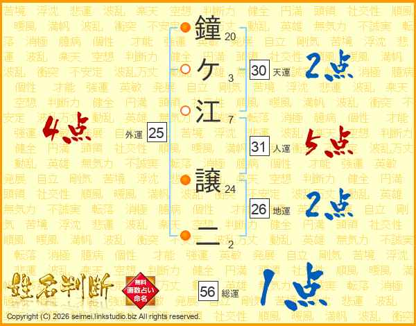 鐘ケ江譲二さんの地運は26画の2点!