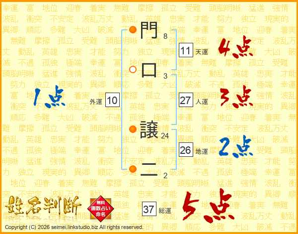 門口譲二さんの総運は37画の5点!