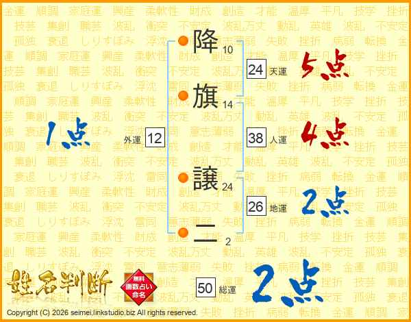 降旗譲二さんの総運は50画の2点!