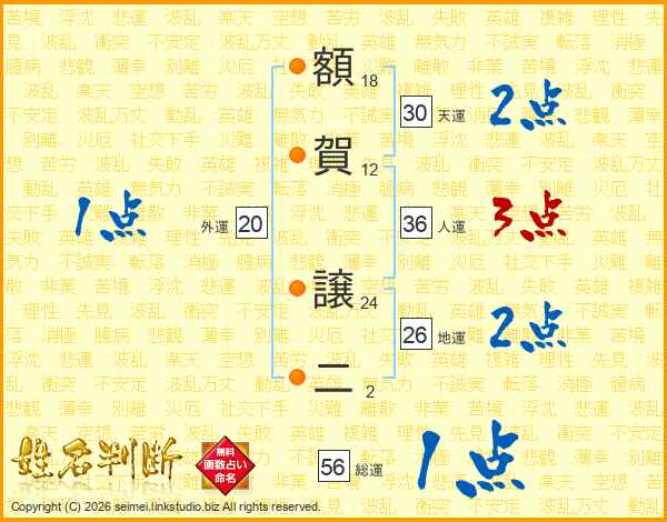 額賀譲二さんの総運は56画の1点!