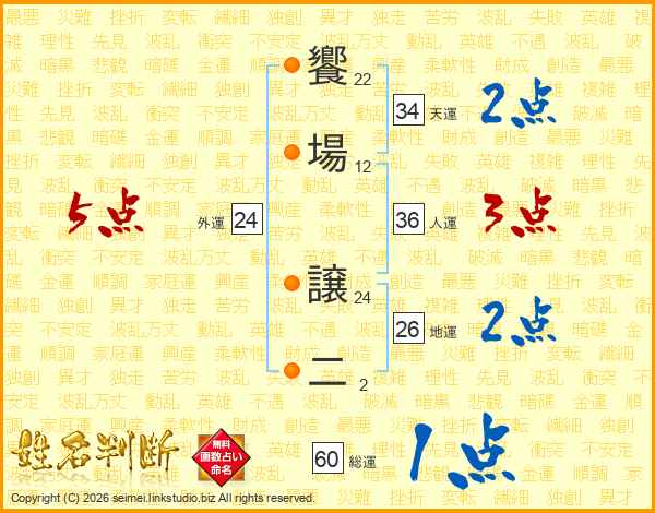 饗場譲二さんの地運は26画の2点!