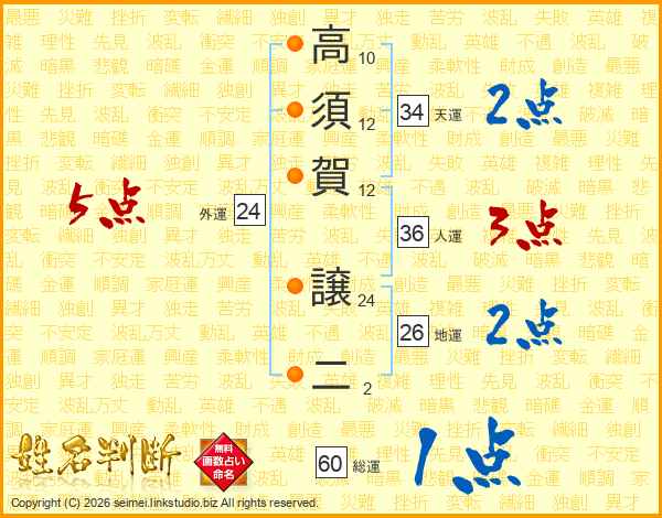 高(10画)須(12画)賀(12画) 譲(24画)二(2画)