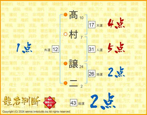 髙村譲二さんの人運は31画の5点!