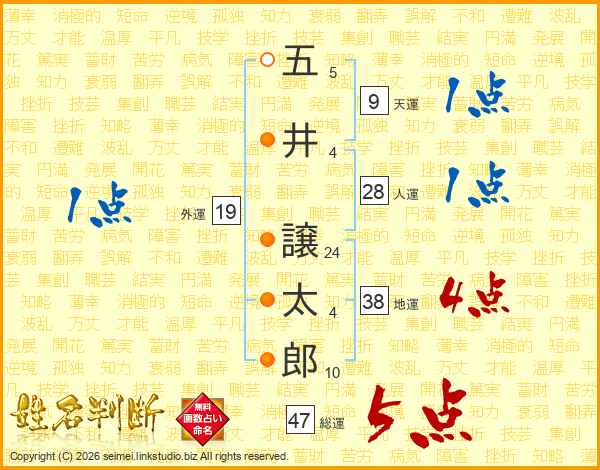 五(5画)井(4画) 譲(24画)太(4画)郎(10画)