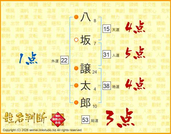 八(8画)坂(7画) 譲(24画)太(4画)郎(10画)