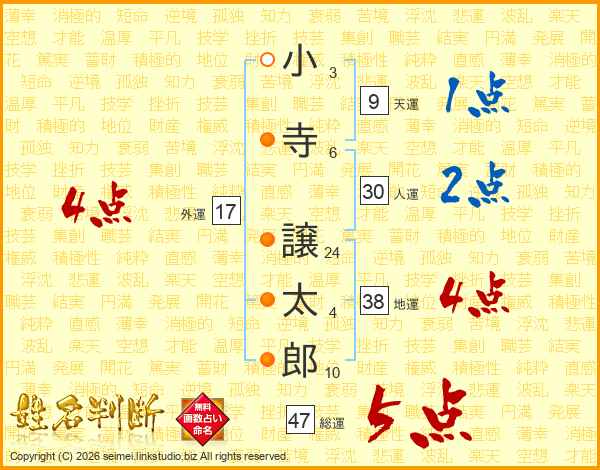 小寺譲太郎さんの総運は47画の5点!