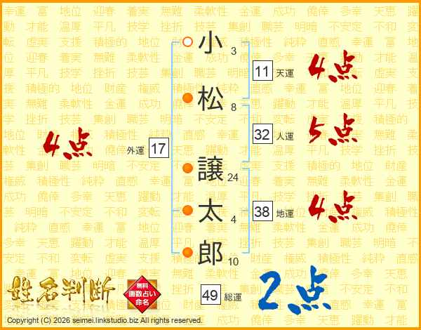 小松譲太郎さんの天運は11画の4点!
