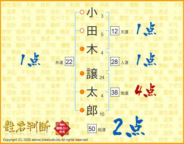 小田木譲太郎さんの地運は38画の4点!