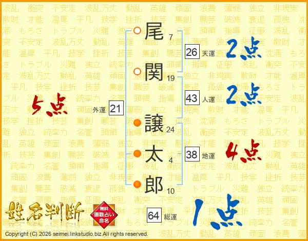 尾関譲太郎さんの外運は21画の5点!