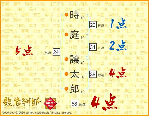 時庭譲太郎さんの総運は58画の4点!