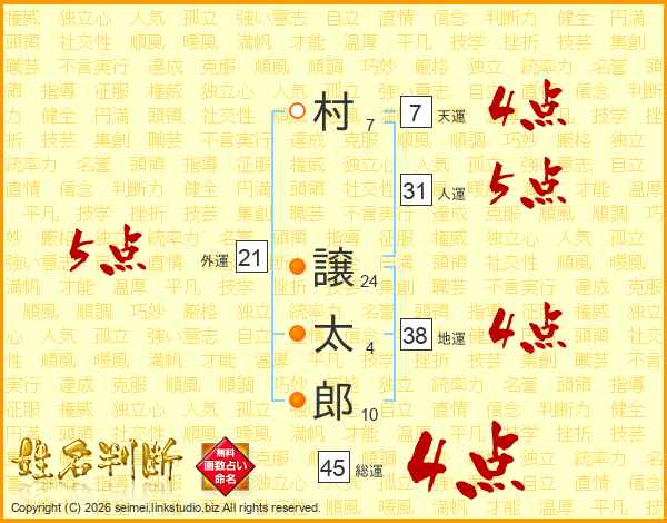 村譲太郎さんの総運は45画の4点!