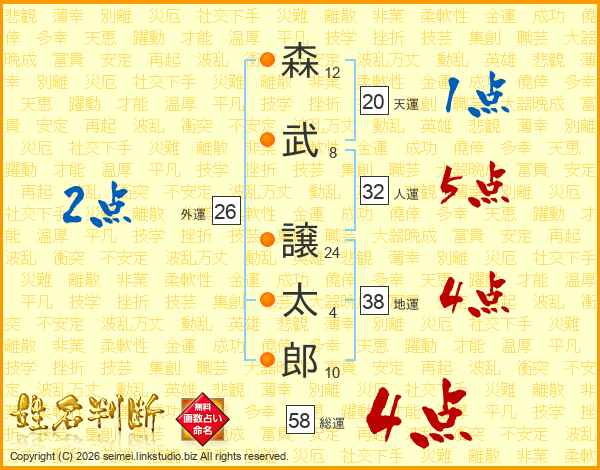 森武譲太郎さんの総運は58画の4点!