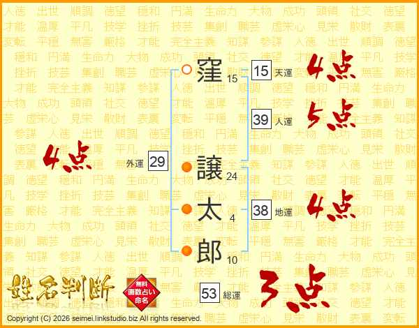 窪(15画) 譲(24画)太(4画)郎(10画)