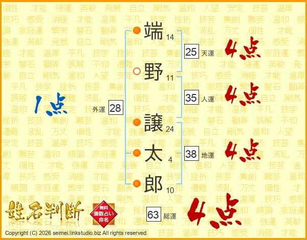 端野譲太郎さんの総運は63画の4点!