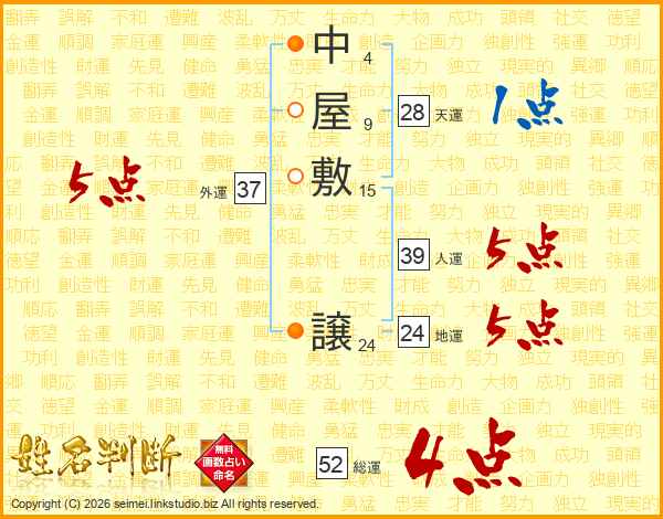 中屋敷譲さんの総運は52画の4点!