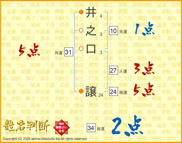 井之口譲さんの外運は31画の5点!
