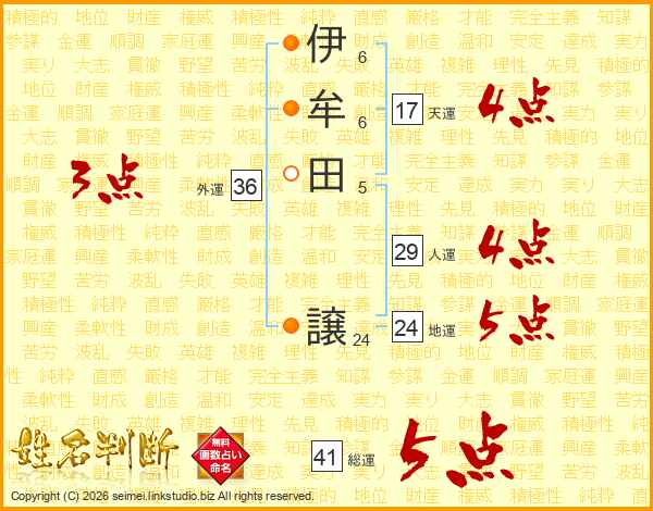 伊牟田譲さんの天運は17画の4点!