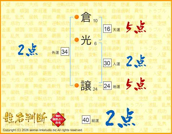 倉光譲さんの総運は40画の2点!