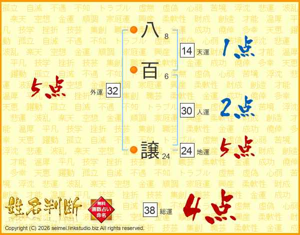 八百譲さんの総運は38画の4点!