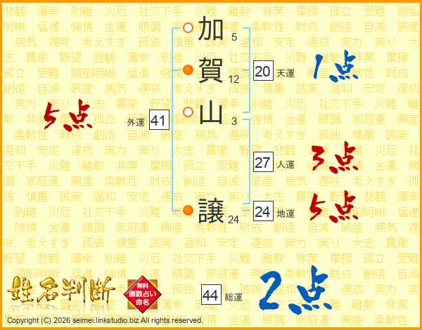 加賀山譲さんの総運は44画の2点!