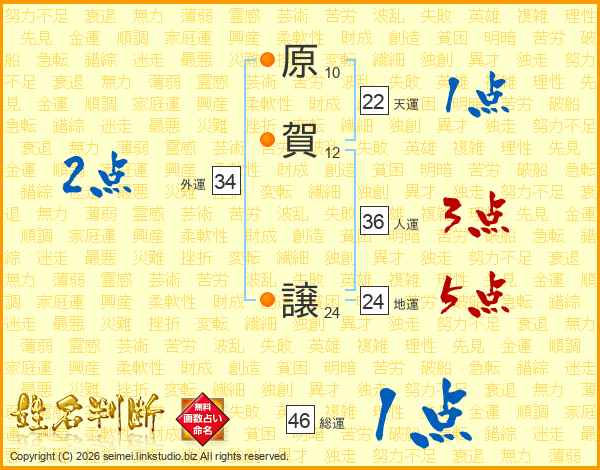 原賀譲さんの人運は36画の3点