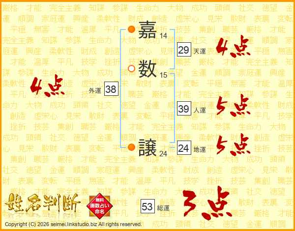 嘉数譲さんの外運は38画の4点!