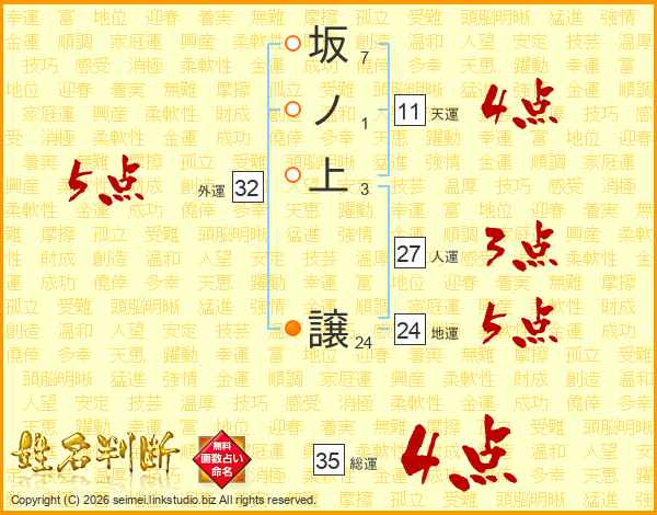 坂ノ上譲さんの総運は35画の4点!